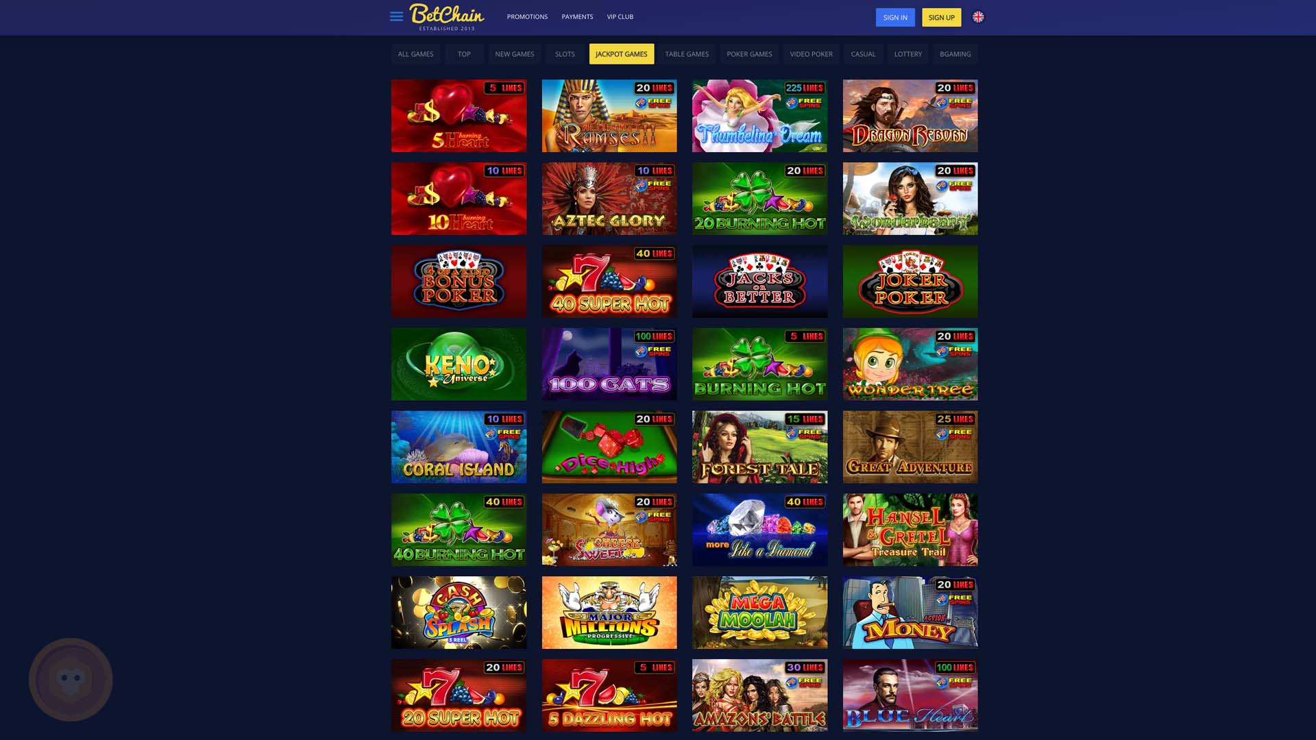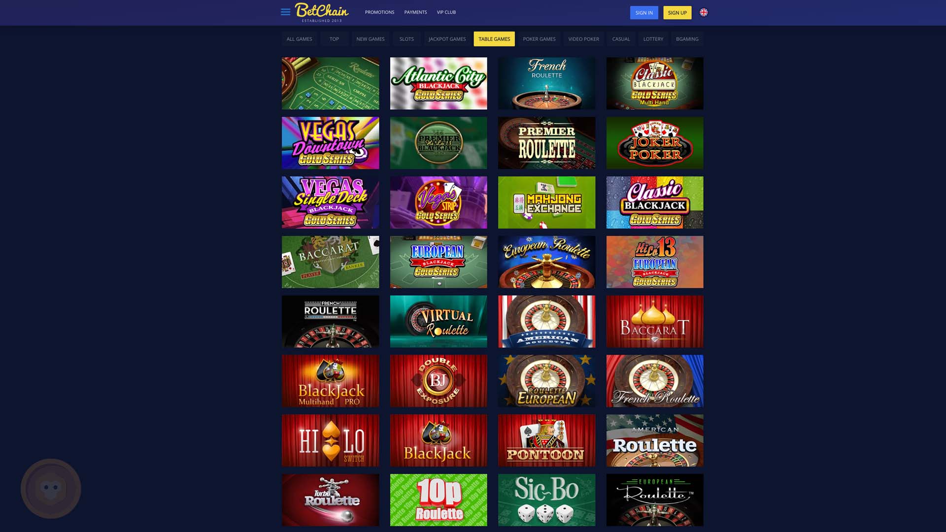 Every player can try a few dozen card and table games at BetChain Casino. Of course, this platform has variants of popular classic table and card games such as roulette, blackjack, and baccarat. Additionally, you can try something out of the ordinary like Andar bahar, casino war, and sic bo.