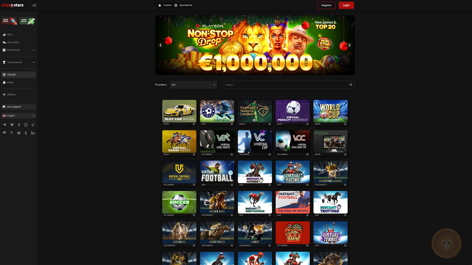 Slots Catalogue at Chipstars Casino