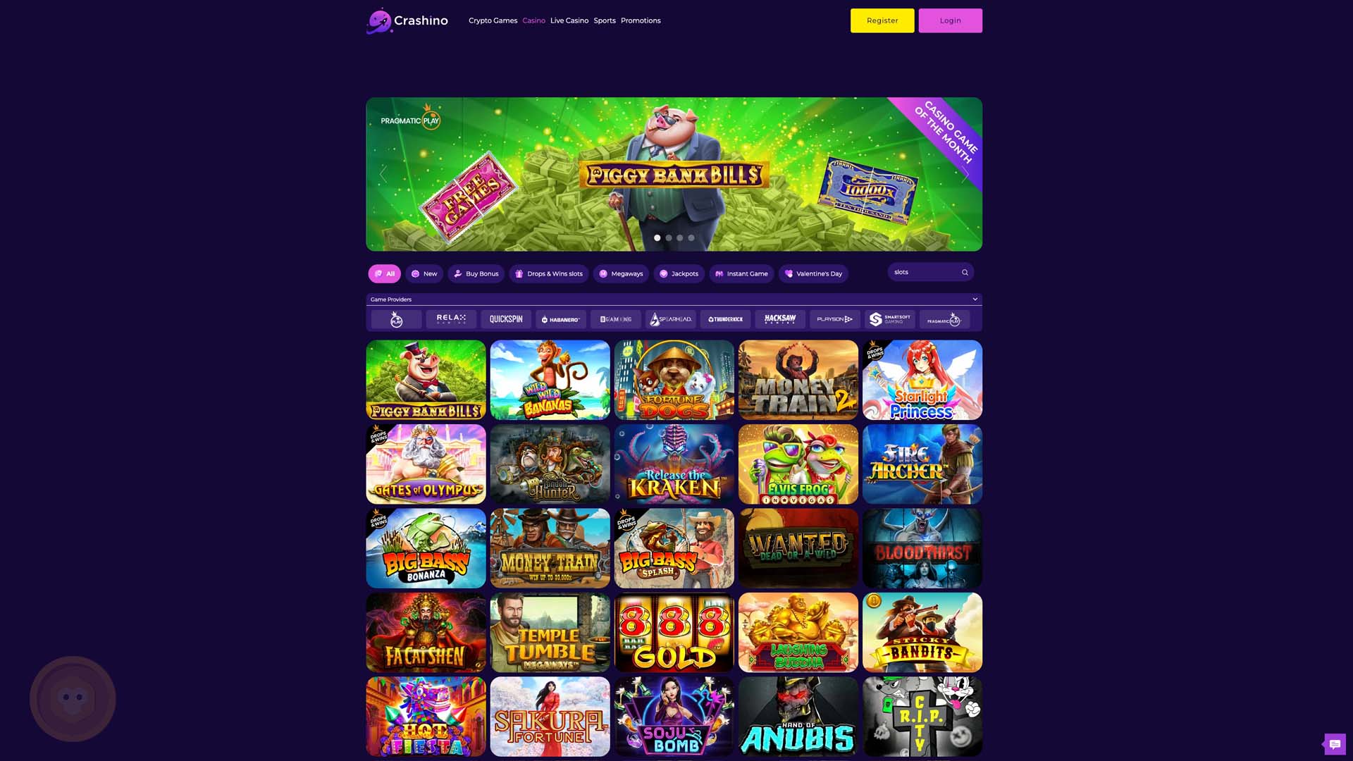 Slots Catalog at Crashino Casino