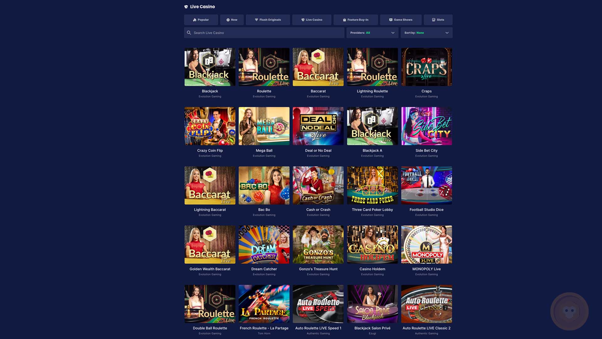 Live Casino Games at Flush Casino
