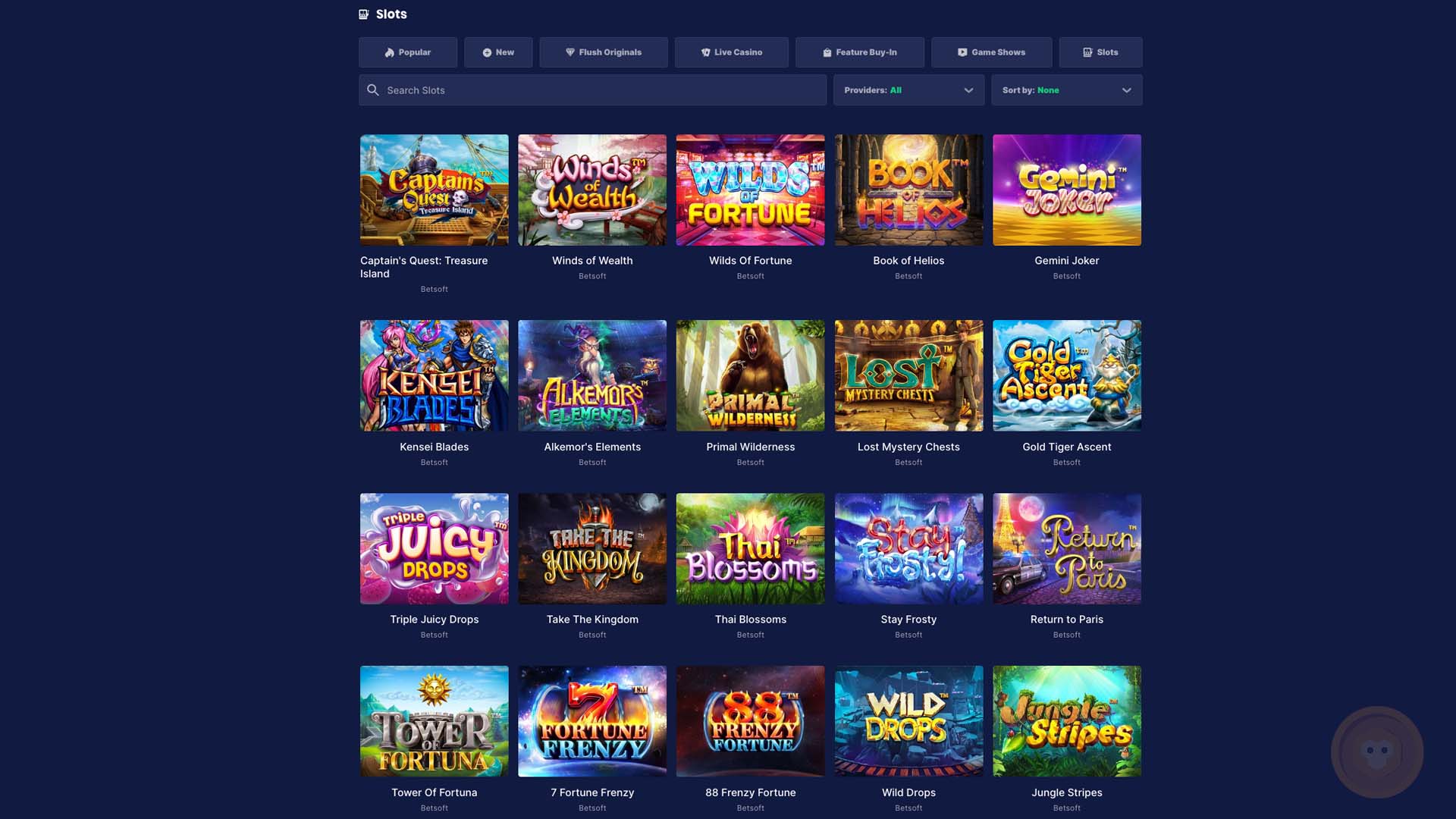 Slots Catalogue at Flush Casino