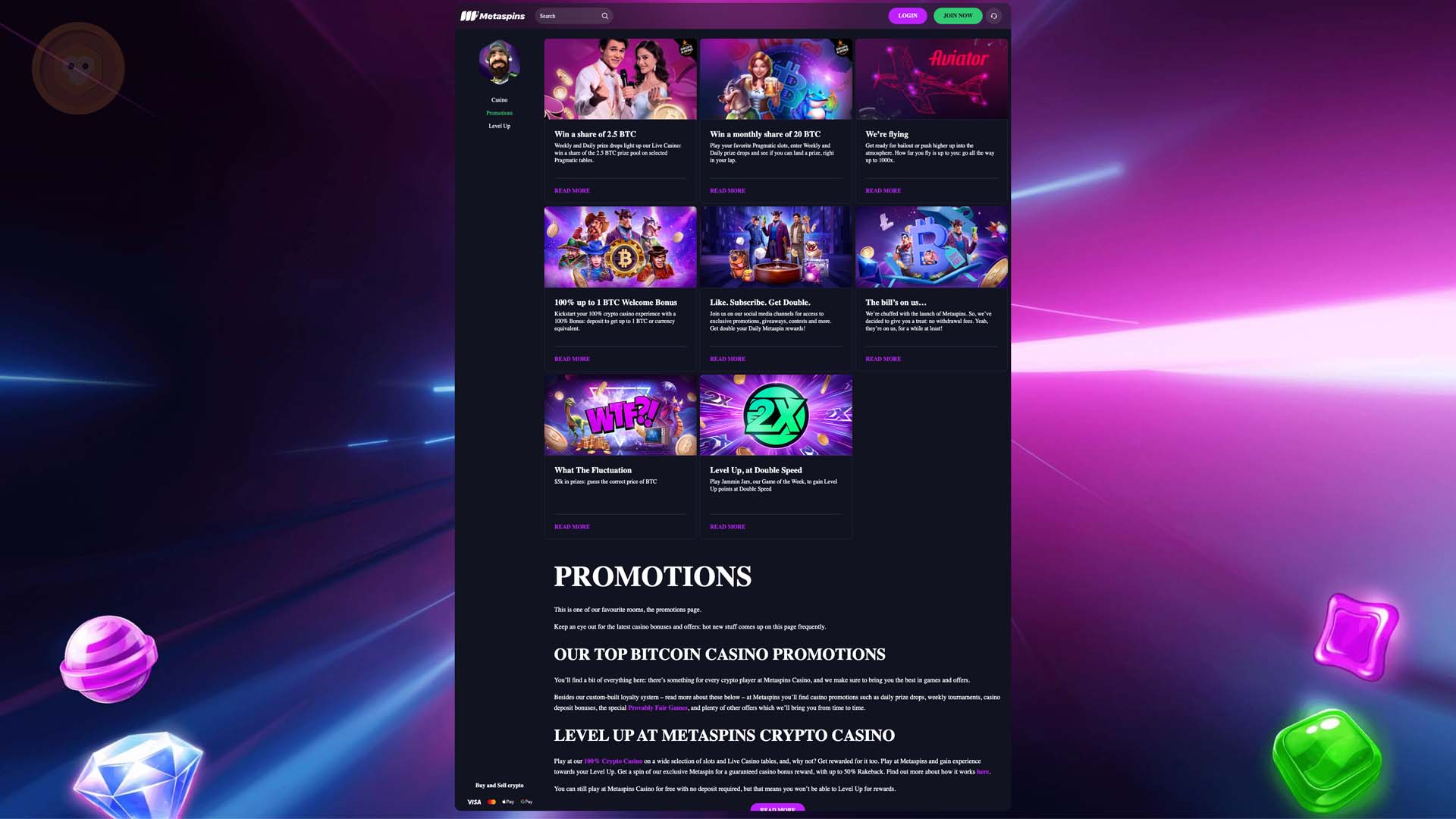- The Bonus Offers are another thing that makes Metaspins attractive. For instance, you can expect daily, and weekly prize drops. Also, players can guess the correct price of BTC for a chance to win up to $5,000.