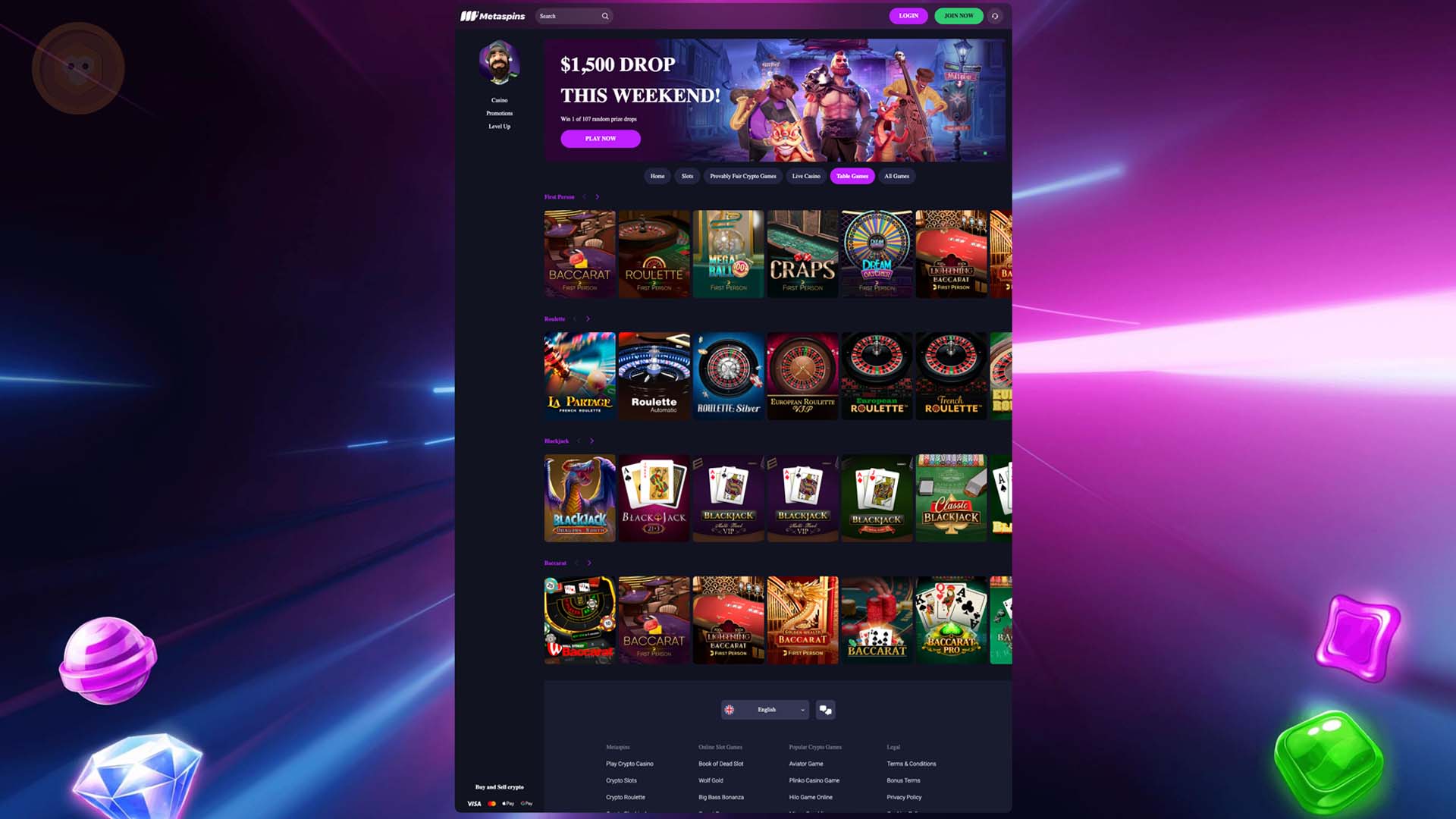 Metaspins Casino has a section dedicated to table games where players can find card games too. The blackjack category is numerous, but you can also play several variants of roulette, baccarat, and first-person games.