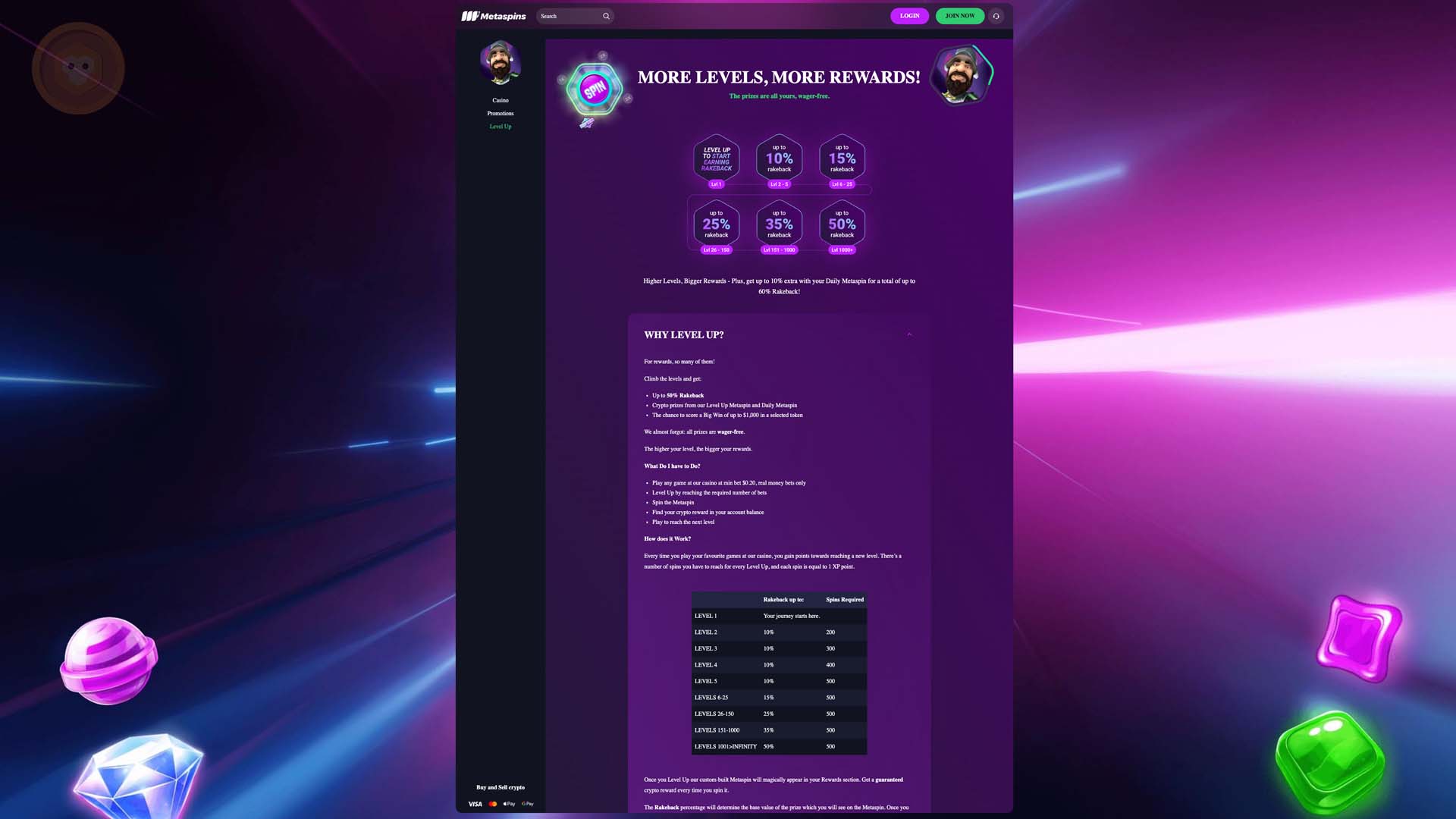 - This is another crypto casino with a VIP program. Your journey in the program starts once you wager money for the first time. Basically, you get points when you place bets on your favorite games. Wagering specific amounts will lead you to new levels promising better rakeback offers and various crypto prizes.